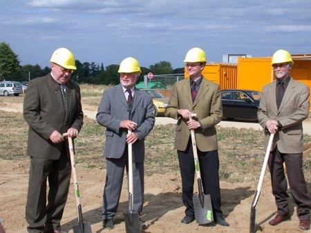 Unter großer Beteiligung der Bevölkerung erfolgte an der Baustelle des Einkaufszentrums am 15. August der erste Spatenstich. Bürgermeister Döring, die Vorsitzenden der beteiligten Ausschüsse, Ludwig Geibel (Bau- und Planung) und Detlef Schmitt (Bau- und Vergabe) sowie Frank Smola, Vertreter des Bauherrn, der Firma Tönnissen in Kleve vollzogen symbolisch den ersten Spatenstich.